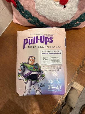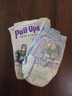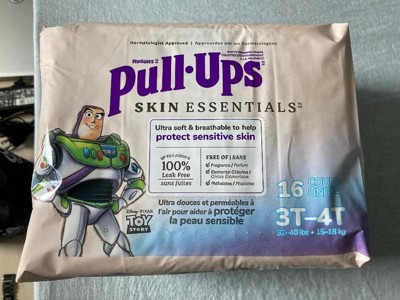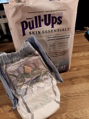 Put your child’s skin health first during the potty training process with Pull-Ups Skin Essentials Training Pants for Boys. Each training underwear is designed with ultra soft and breathable materials that help to keep your child comfortable and help protect their sensitive skin. Up to 100% leak free, Pull-Ups Skin Essentials Potty Training Pants feature a targeted absorbency zone to protect boys where they need it most and help maintain comfortable and healthy skin. Dermatologist-approved Pull-Ups Skin Essentials toddler training pants for boys are hypoallergenic, free of fragrance, elemental chlorine, parabens, phthalates, natural rubber latex and lotions. For little ones who are on-the go, these training pants feature soft, refastenable sides that allow for easy changing. Our boys training pants feature designs from Disney’s Toy Story with star graphics that fade when wet to help motivate your child to stay dry. Pull Ups Skin Essentials training pants and Huggies Skin Essentials diapers and wipes give you everything you want for your child’s skin and nothing you don’t. They’re dermatologist-approved and designed to help keep skin clean and healthy from baby to Big Kid. When your child is ready to begin his potty-training journey, the Pull-Ups brand can help. Visit the Pull-Ups website for potty-training tips and resources. Pull-Ups Boys' Training Underwear are available in sizes 2T-3T (16-34 lbs), 3T-4T (32-40 lbs), 4T-5T (38-50 lbs) and 5T-6T (50+ lbs). (*US and CA)