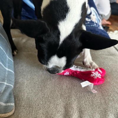 [This review was collected as part of a promotion.] This dog toy is adorable! I have a Shorkie and it’s the perfect size for her. She loves carrying it around and the little squeak makes her so excited. The “Merry Christmas” design is so cute and festive, and the bow adds the perfect touch for the holidays. Great quality and super fun for small dogs! It’s a little pricey for a dog toy, but she really seems to enjoy it.