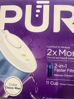 PUR 11 Cup Water Filtration Pitcher - Blue/White: BPA-Free, Plastic, Pur Pitcher Filters, Mercury Filter, 1 Filter Included