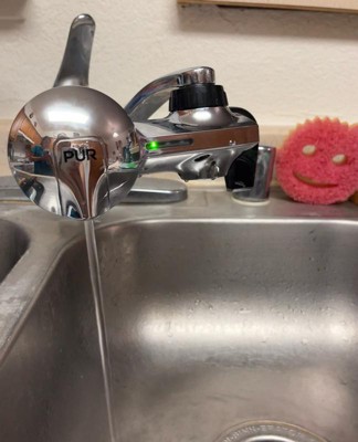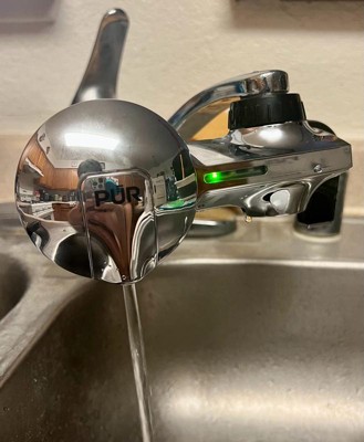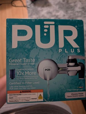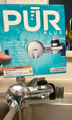 In addition to having confidence in cleaner, better-tasting drinking water, PUR has also engineered its PUR PLUS Faucet Mount Water Filtration System to be easy to use. No tools are necessary, simply thread the PUR PLUS Faucet Mount Water Filtration system on to your faucet‡ for cleaner water, on demand. It is also equipped with an on/off lever so you can easily switch from non-filtered water over to filtered water. A filter change light ensures you'll always know when it's time to change your Genuine PUR PLUS Faucet Mount Replacement Filter. Remember, compatible doesn't mean comparable. Only Genuine PUR Faucet Mount Replacement Filters are certified to work with the PUR PLUS Faucet Mount Water Filtration System in Horizontal, Chrome.