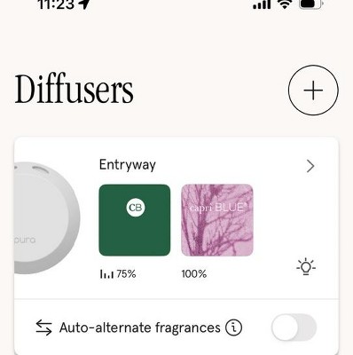 I was looking for a home scent difuser that didnt need batteries and was easy-to-use. I like that i can control the fragrance amount with the app from my phone and set schedules as well. The variety of scents are endless and the app is simple to navigate.Pura fills my home with a wonderful scent "Cozy Cashmere". More scents should be available in stores though.