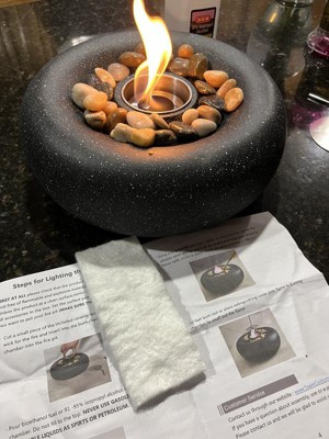 [This review was collected as part of a promotion.] Got this a few months ago. My dear daughter wanted to roast marshmallows on it, not quite what is for. It is very heavy. Which is great for making sure it doesn’t tip and burn anything. It is very safe. It is smaller than I thought it would be from the pictures. It’s an alcohol burner, so I just used isopropyl, rubbing alcohol from local store which worked great. Included is a fiber wick which you cut and put a small piece into it before burning. Not sure where to get more, but I haven’t ran out yet. The rocks are removable. You can change them. Didn’t have any smoke. I think the outside bowl is stone, but it is very heavy. You can’t move it around a lot.