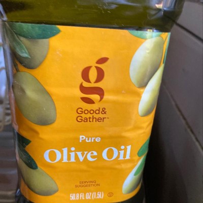 Add mild yet delicious flavor to your favorite dishes when you use Pure Olive Oil from Good & Gather™. The mild flavor of this olive oil makes it a great pairing for balsamic vinegar in salads, or for bringing a touch of savory taste to meats and stews. The smoke point of 390°F is well suited to cooking done at higher temperatures, such as roasting, frying and grilling, making this olive oil great to have on hand whether you're making a hearty cold-weather dinner of roast chicken and potatoes or grilling up some steaks and corn when it's warmer out.