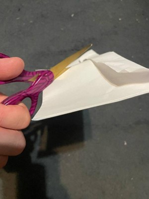 These scissors are a bit small, but they cut paper fairly smoothly. I take it these scissors are meant to go in the "party supplies" department, based on the way the handle is decorated. I would prefer blue over purple as a decoration, but at least these scissors are functional and easy to hold.