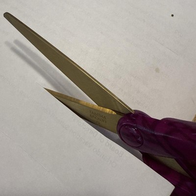 [This review was collected as part of a promotion.] These scissors are aesthetically so pleasant. My daughter loves crafting and I gifted these scissors to her for her birthday. She wanted us to stop using her scissors and now she is very identifiable scissors so she can use them without them getting taken. The blades are sharp and are great for cutting yarn and threads. A high quality product for sure. I love the purple and gold! I received an incentive to write this review.