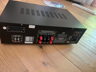 [This review was collected as part of a promotion.] Work’s amazing, I got it and asked my family what they thought, as it’s been about 10 years since I last got a new stereo, and they said the difference was amazing. There’s so many different buttons to change sound, volume and bass as well as the fact there’s multiple holes for karaoke machines, and it comes with a remote and all the cords to connect it. The design fits right in with my tv and karaoke machine, which I love because I hate mismatched furniture. The price is probably the best part because normally I spend so much for this quality but the is the best bang for buck I’ve found in a while. Finally I ordered a second one to put in my movie room, and I have recommended it for all my friends.