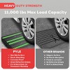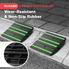 The Pyle Curved Curb Ramp Set is designed to make crossing uneven curbs, driveways, gutters, and sidewalks easier for vehicles. Each ramp is made of durable, wear-resistant rubber, providing a non-slip, textured surface that ensures vehicles pass smoothly. With marine-grade waterproof-rated construction, these ramps are built for both indoor and outdoor use. The reflective yellow and green strips enhance visibility and safety, especially at night. The ramps are easy to install with expansion screws and optional cut-out holes for permanent mounting. Suitable for various vehicles including cars, trucks, trailers, RVs, and forklifts, the ramps have a high load capacity of up to 11,000 lbs. for heavy-duty applications.