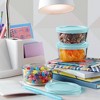 - SET INCLUDES: Three 1-cup round glass containers with colorful plastic lids