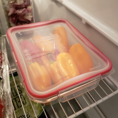 We love these containers because they are glass, and because the lids don't tear at the edges over time since they snap on.