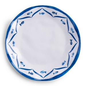 Featuring a classic Mediterranean design, this collection will turn any setting into a tranquil seascape. Made of 100% melamine, this BPA free dinnerware is virtually unbreakable and easily mistaken for ceramic or porcelain.
