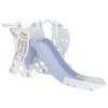 Turn your home into an intergalactic playground with this Qaba space-themed toddler slide and swing set. This 3-in-1 wonder features a swing, slide, and basketball hoop for endless entertainment. Safety is our priority, so it features rounded edges and friendly materials. Your kids can get playing in no time. With no extra tools needed, assembly is a breeze. Let them swing, slide, and ride the rocket with this playset. Watch their imaginations soar as they explore the cosmos right at home.