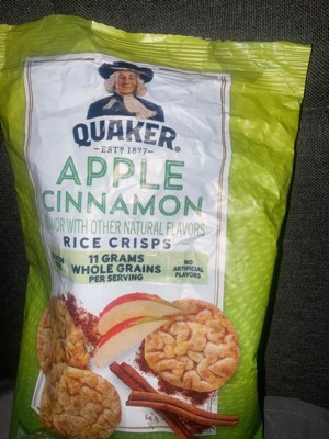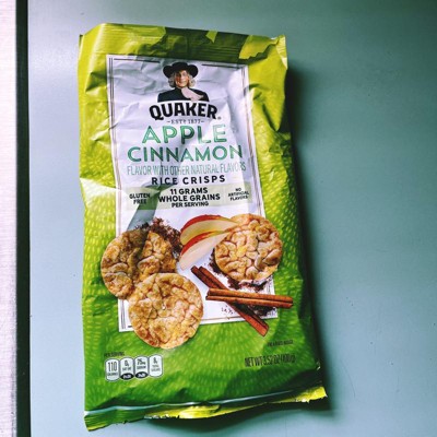 - Quaker Apple Cinnamon Mini Rice Cakes: What do you get when you combine the flavors of tangy apple with tasty cinnamon and crispy crunchiness? Totally delicious rice snacks that will leave you speechless – mostly because your mouth will be full. Popped. Never fried.