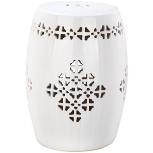 Elevate your outdoor decor with the quatrefoil garden stool in antique white. Crafted from glazed ceramic, this exquisite piece adds a touch of sophistication to any setting. Its intricate design showcases elegance while serving as a versatile accent. Use it as a stylish side table, a convenient seat, or simply as a decorative piece to enhance the beauty of your garden or patio. The antique white color blends seamlessly with various styles, offering a timeless appeal that complements any space. Embrace the charm and functionality of this garden stool, and transform your outdoor area into a haven of style and grace. Perfect for those who appreciate the finer details in design, this stool is a must-have for creating a refined and inviting atmosphere.