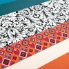 The free-spirited stripe patterns within each of the stripes pair perfectly with our coordinating bedding sets, window panels, throw blanket, and shower curtain for your attached bathroom, or you can style this Boho Stripe Set in a creation of your own. A solid color textured bedding set is another great option to use with these printed sheets.