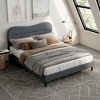 - 【Anti-Collision & Protection grey Bed Frame Queen】This cute upholstered queen bed frame with headboard features rounded edges, forming a cloud-like silhouette that’s as charming as it is safe. The curved design not only offers better back support but also minimizes injuries from daily bumps, suiting kids, teenagers, and adults alike. Its cute, cloud-inspired look blends modern style with practicality, making it a standout piece that’s both protective and pleasing to the eye.