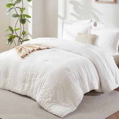 Queen Comforter Set, White, Boho Tufted, Shabby Chic, Lightweight, 2 Pillow Cases