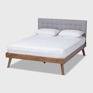 Queen Devan Fabric Upholstered Platform Bed with Headboard - Baxton Studio: Mid-Century Modern Style