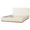 Queen/King Size Platform Bed Frame with Upholstered Headboard & Minimalist Striped Fabric, Beige - ModernLuxe