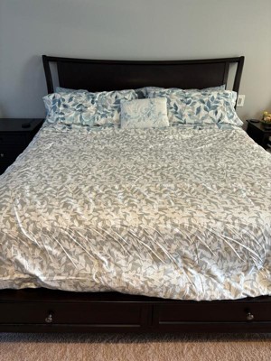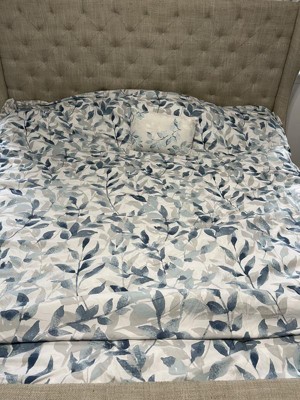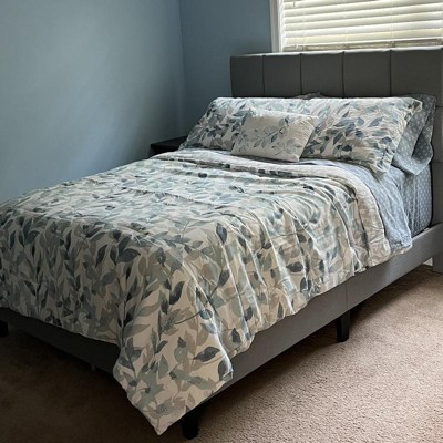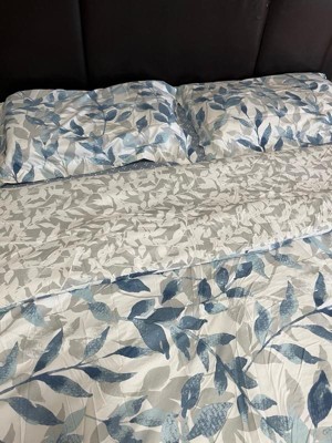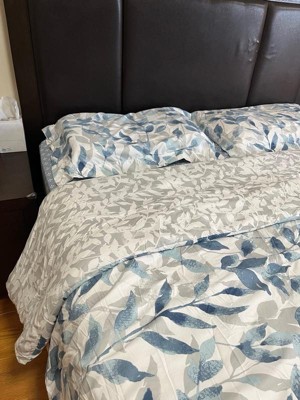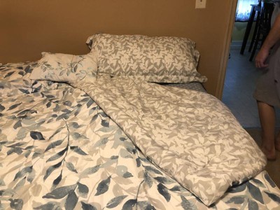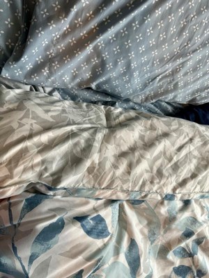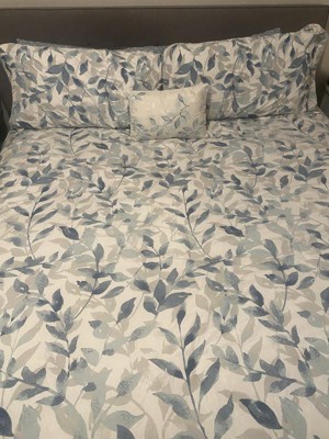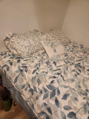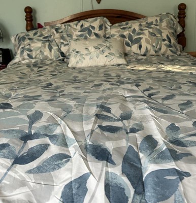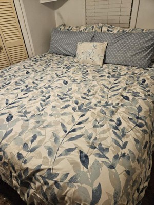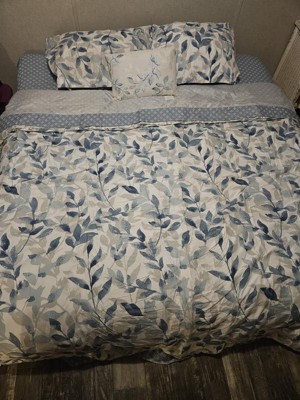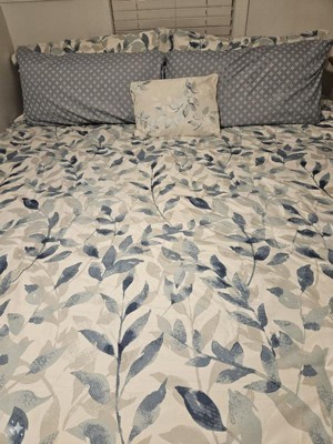 [This review was collected as part of a promotion.] Wow this bedding set is absolutely beautiful. The light neutral colors of the Comforter goes so well with my bedroom decor. The comforter is reversible so I can change from one style of navy blue leaves to white colored leaves. The fitted sheets are nice soft color of blue, but I didn’t like how the constantly come off the mattress. The decorative pillow adds that perfect touch when the bed is made every morning. This is the bed set I would use during spring and summer months since it’s light and comfortable.