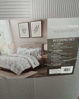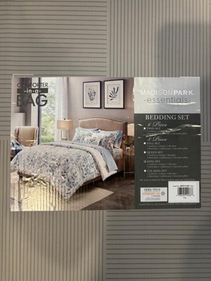 Queen Leisha Reversible Complete Bedding Set - Blue: Madison Park Microfiber, Hypoallergenic, OEKO-TEX Certified