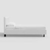 Give a luxe finish to your bedroom with this Olivia Platform Bed in Velvet from Threshold™. This platform bed features a comfortable low profile with a lightly-padded rectangular headboard for simple, modern style. Constructed of pinewood, it's upholstered in solid-colored velvet fabric for easy coordination with any decor aesthetic. Simply add your own mattress, cushioned pillows and your choice of sheets to create a comfy space you'll love to fall asleep in.