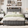 Platform Bed Frame with Storage Drawers, Upholstered Headboard Shelf, Sturdy Quiet Structure, No Box Spring Needed, Gray