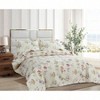 Queen Size Beige Floral Bedspread, Lightweight Reversible Quilt with 2 Pillow Shams