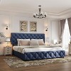 Product Name: Queen Size Linen Upholstered Platform Bed, Headboard & Footboard, 4 Storage Drawers, Wooden Slats, Diamond Tufted, No Box Spring Needed, Blue