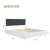 Refresh your bedroom with this queen platform bed, featuring a softly upholstered headboard for comfort and style. Its sturdy blend of metal and solid wood ensures reliable support, while noise-minimizing connections promise restful sleep. Compatible with most 8–12" mattresses, this frame is easy to assemble and elevates any decor with its understated elegance.