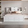- Ample Storage with 8 Drawers & Built-In Shelves This bed features a smart storage solution: 4 under-bed drawers, 4 drawers at the foot of the bed, and a built-in headboard shelf¡ªperfect for organizing clothes, bedding, books, and personal items. Two drawers include small doors for added privacy.