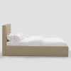 - Upholstered low platform bed, designed for use without a box spring