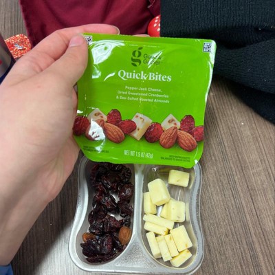 - Good & Gather snacks with pepper jack cheese, dried sweetened cranberries and sea-salted roasted almonds