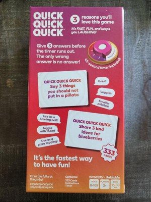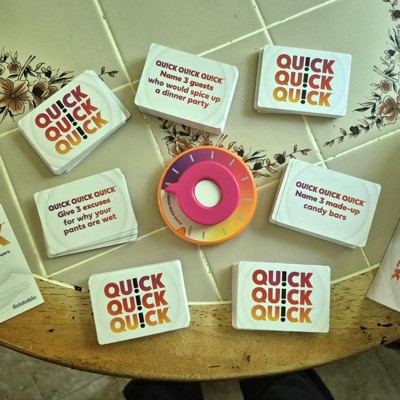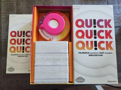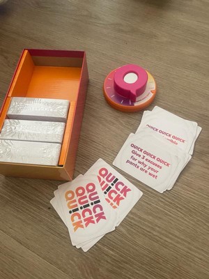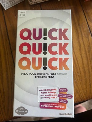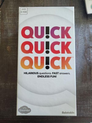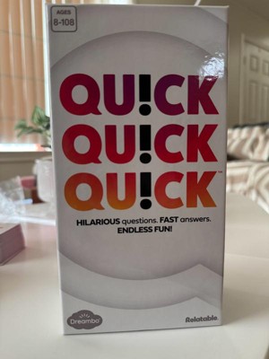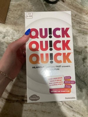 [This review was collected as part of a promotion.] I played Quick Quick Quick! at a party recently and it was so much fun! The game is super fast-paced and keeps everyone on their toes, which makes it perfect for keeping the energy high. It’s really easy to learn, so even people who don’t normally play games jumped right in and had a great time. We were all cracking up at the answers people came up with, and the rotating judge role added a fun layer of variety. It’s the kind of game that gets everyone talking and laughing, and I can definitely see it becoming a go-to for future game nights.