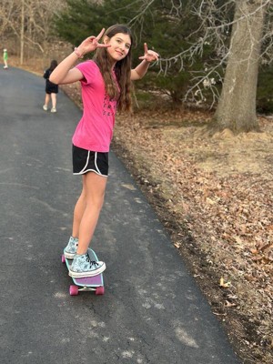 [This review was collected as part of a promotion.] This board is so pretty to look at. The colors are bold and vibrant. The flowers are nicely done. The wheels turn smoothly. We’ve had boards in the past where one wheel always sticks and doesn’t turn as well, not the care with this Quicksilver brand. All the wheels move just right. It’s a good length and enjoyable to ride. Highly recommend for the girls in your life who want to skate.