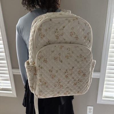 [This review was collected as part of a promotion.] The Universal Thread Quilted Backpack is as beautiful as it is versatile. I ordered the “tan” color and it s the perfect ivory ish neutral color backpack. I’m 5’5” and it’s the perfect travel backpack for me. I love that I can slip it over my suitcase handle for easy travel in the airport. It definitely looks like a higher end backpack and I love the quilting detail and the insulated compartment. Great buy! I received an incentive to write this review.