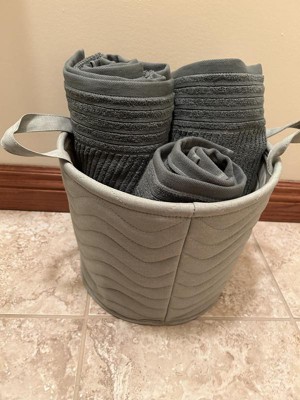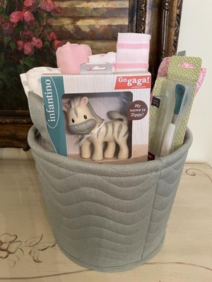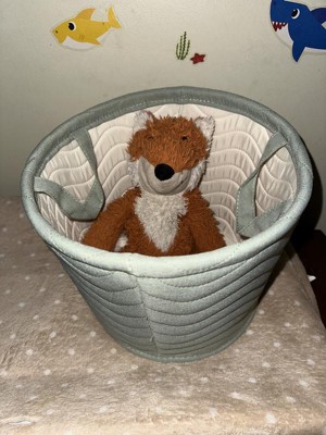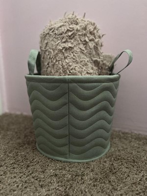 The Quilted Fabric Medium Round Storage Basket by Cloud Island is perfect addition to any baby or child's room. The green is a beautiful soft green color, the basket is soft, yet sturdy and the size is perfect for small toys or swaddling blankets.
