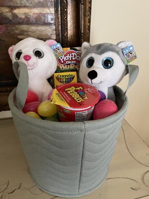 Absolutely love this basket from Cloud Island. Super versatile. So versatile that it was tough for me to decide where to put it and what to put in it.…I had so many options. Absolutely perfect for just about anything… holding building blocks, puzzles, stuffed animals, diapers and wipes, swaddling blankets, books, etc. Finally decided that I would use it as an Easter basket for my grandbaby. After Easter, it's going in the baby's room to hold diapers and other baby supplies. Would absolutely make a perfect shower gift filled with diapers, wipes, bibs, and other baby essentials. Beautiful unique quilted look……looks good while keeping things tidy. Would look perfect in a variety of spaces and home styles. I got the green color (I would call it sage green) but love all the color options available. Baby already has several other Cloud Island products (swaddle blankets, bibs, clothing, etc.) so I already was aware of the excellent quality of the brand, and this bucket continues to show that quality that I love and trust. Lightweight and sturdy with well made handles. Holds shape well when filled to the max. Would for sure recommend to others!