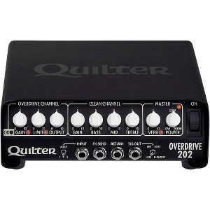 The OverDrive 202 guitar head combines the best features of prior 200-series models with many new enhancements. It delivers serious tone for the discerning metalist or any guitarist looking for that pricey yet unreachable tone. Despite its small size and streamlined controls, this little powerhouse can replace almost any stage amp ever made.The INPUT has a high impedance for maximum pickup response. The OverDrive Channel GAIN adjusts a wide range of signals from clean to overdrive. Turning up the LIMITER progressively cushions overdrive distortion while maintaining low-level sustain and is effective on both channels. The OUTPUT sets a level that is also controlled by the MASTER VOLUME. On the Clean Channel, a traditional 3-BAND EQ provides full control of the instrument’s tonal balance and affects both the Clean and OverDrive channel. A VOICE switch selects 3 distinct personalities that can be further adjusted with the wide-range EQ controls. VOICE 1 is a flat response with added treble sparkle. VOICE 2 provides a unique bell-like tone, and VOICE 3 channels the classic “blackface” mid-scoop. Each of these voices lends a distinct sound to their respective Overdrive voices.The VERB is post FX LOOP and expands sound stage with a nicely voiced wash of smooth decay. The MASTER control adjusts the breakup threshold of the clean channel from 0 to 200 watts, offering clean headroom and/or rich layered overdrive at will. The SIG OUT is a dual purpose TRS Balanced Line Out or headphone jack, depending on the PRE/POST switch setting. On the rear will find the UNIVERSAL AC INLET, twin SPEAKER outputs (4-8 ohms), and a traditional RJ-45 connector, allowing a Quilter footswitch to control overdrive channel switching, limiter, and reverb.Quilter Labs uses modern high-efficiency power technology to maximize warmth and dynamics without the weight and drawbacks of classic tube technology. Advised by musicians, their constant goal is to make products that they are proud to use. The result is a serious professional tool with performance that meets needs.