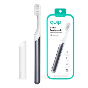 quip Sonic Metal Electric Toothbrush with Timer and Travel Cap - Slate: Soft Nylon Bristles, Battery Powered, Includes Brush Head
