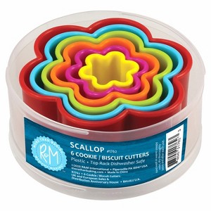 - Set of 6 bright colored scalloped shaped cookie and biscuit cutters in various sizes