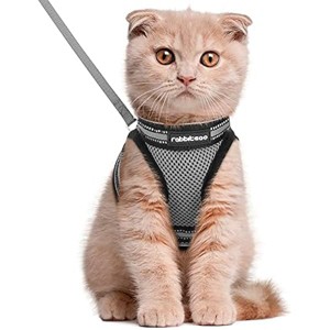 rabbitgoo Cat Harness and Leash Set for Walking Escape Proof, Adjustable Soft Kittens Vest with Reflective Strip for Cats, Comfortable Outdoor Vest, Grey, L