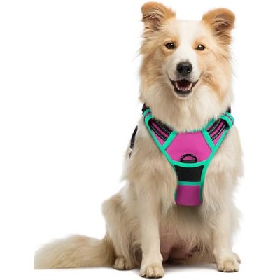 rabbitgoo Dog Harness No Pull with 2 Leash Clips, Control Handle for Small Dogs, Pink & Blue, S