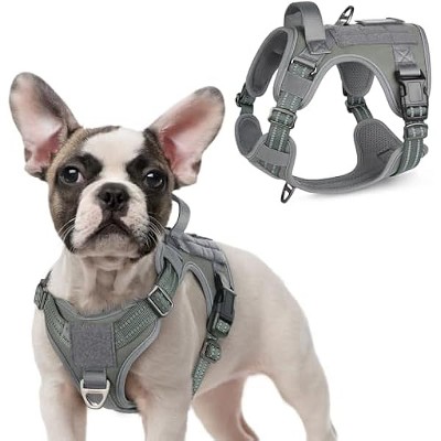 rabbitgoo Tactical Dog Harness for Large, Heavy Duty Pet Harness with Handle, , Adjustable Military Dog Vest for Training Hunting Walking, Brown, L