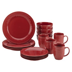 Rachael Ray 16pc Cucina Dinnerware Set Red: Ceramic Ikat Design, Dishwasher-Safe, Service for 4, Includes Mugs & Plates