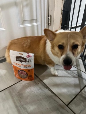 My dog is allergic to chicken so I am always looking for good chicken-free treats which sometimes can be harder than expected but these fit the bill! He loves the taste and I like that real turkey is the #1 ingredient with no artificial flavors or meat by-products. I also like that the bag is resealable. I do wish that the treats were more uniform in size and they can get a little crumbly in the bag which makes it difficult to easily pull one out for my dog.