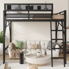 Queen Size Loft Bed with Ladder, Metal Full Loft Bed with Storage Shelves, Black