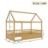 Racxily Floor Wooden Bed with House Roof Frame, Fence Guardrails(Natural)