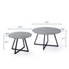 2-Piece Nesting Set ¨C Includes one large and one small round table for versatile use. Wood-Grain Finish ¨C Smooth surface with a modern grey wood look. Sturdy Metal Frame ¨C Black powder-coated legs ensure strength and stability. Flexible Arrangement ¨C Use nested together to save space or separately for convenience. Modern Minimalist Design ¨C A chic accent that complements contemporary and industrial interiors.