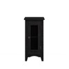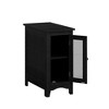 Industrial Accent Table ¨C Black with Red Distressing & Metal Mesh Featuring a black veneer finish with intentional red distressing, this narrow table adds industrial character to any space. The closed cabinet includes an antique bronze knob, metal mesh door panel, and fixed interior shelf for organized storage of books or essentials. Perfect as a compact end table or nightstand. Easy to clean and assemble with included instructions.