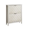 - Mid-Century Farmhouse Style with Distressed Finish: This shoe cabinet features a vintage-inspired design with hand-rubbed distressing and a classic checkered panel, adding rustic charm and antique character to hallways, entryways, or living spaces.